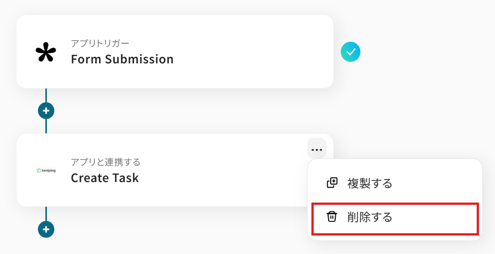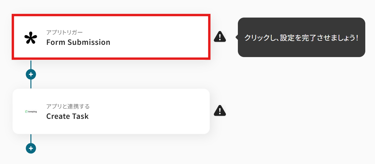 このワークフローを活用すれば、Tallyのフォームが送信されると同時に、Keepingへタスクを自動で作成できます。