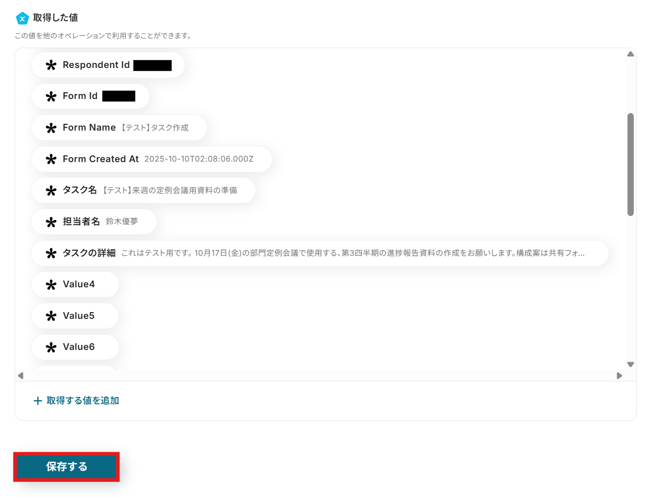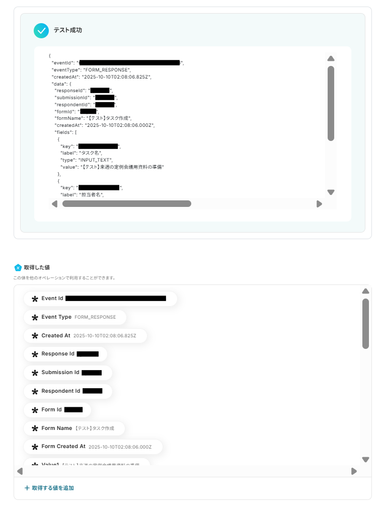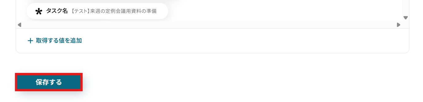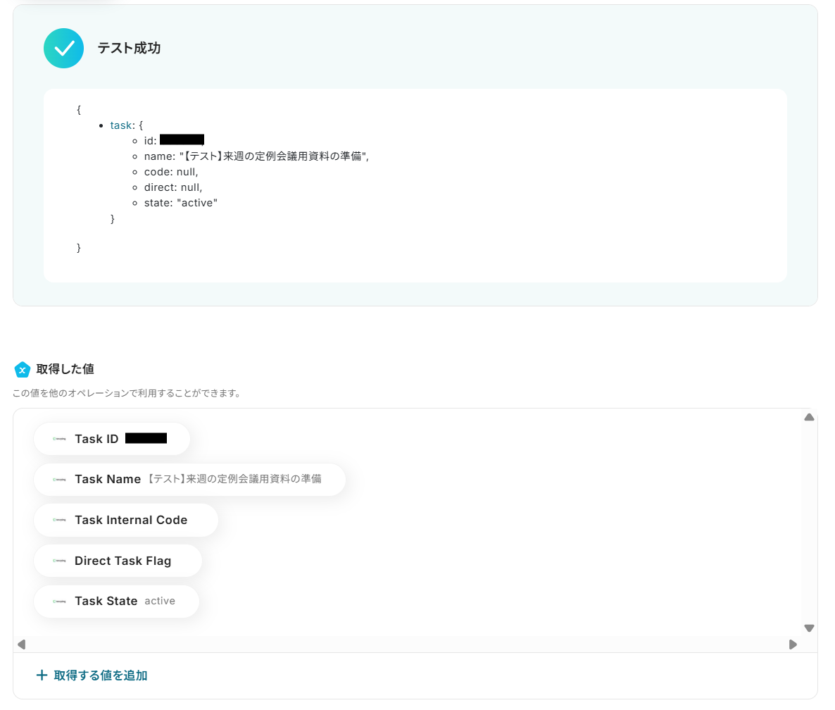 全て手入力をしてしまうと、同じタスクが重複して作成されてしまいます。IDなど変化する部分は、取得した値を引用して設定するようにしましょう。