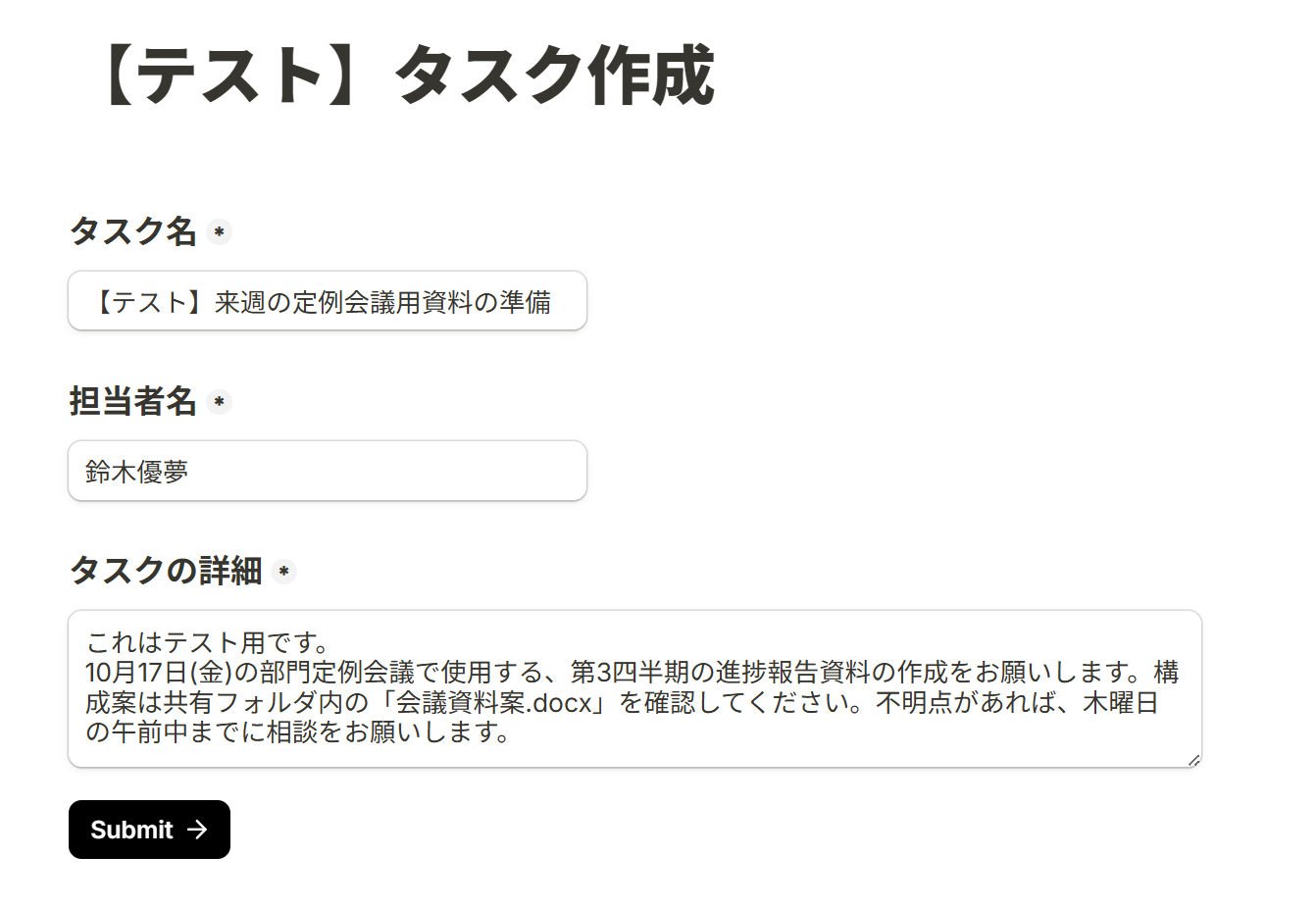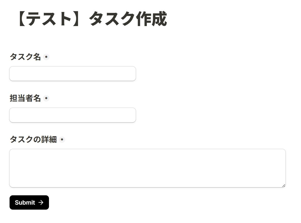 なお、今回はテストをスムーズに進めるためテスト用のフォームを事前に作成しています。
