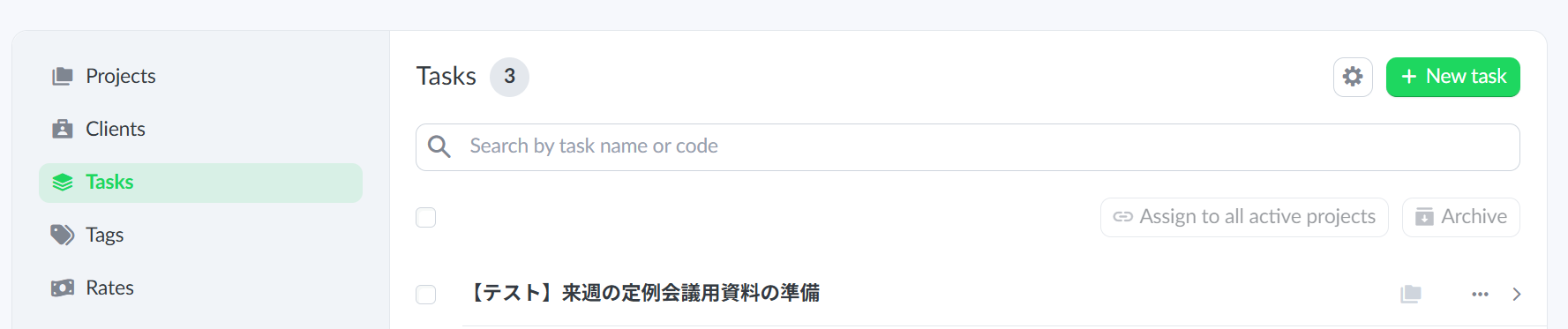 テスト後はKeepingの画面できちんとタスクが作成されているか確認しておきましょう。