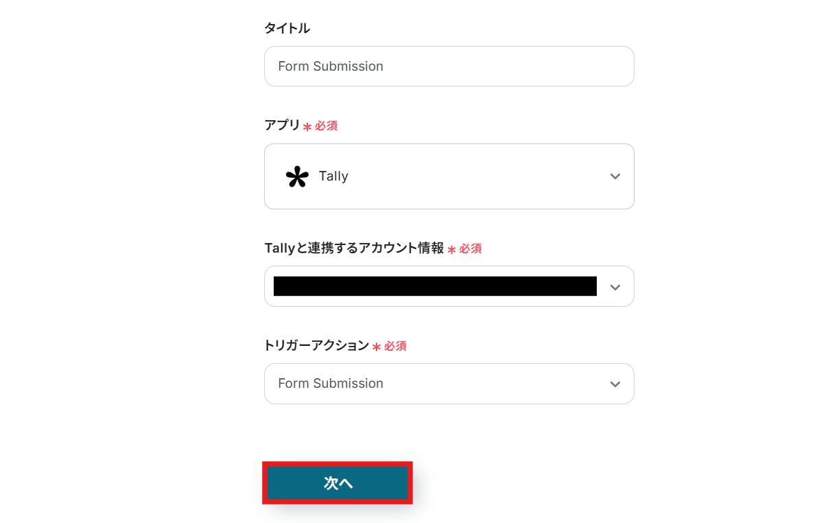 Tallyと連携するアカウント情報はプルダウンから選択します。