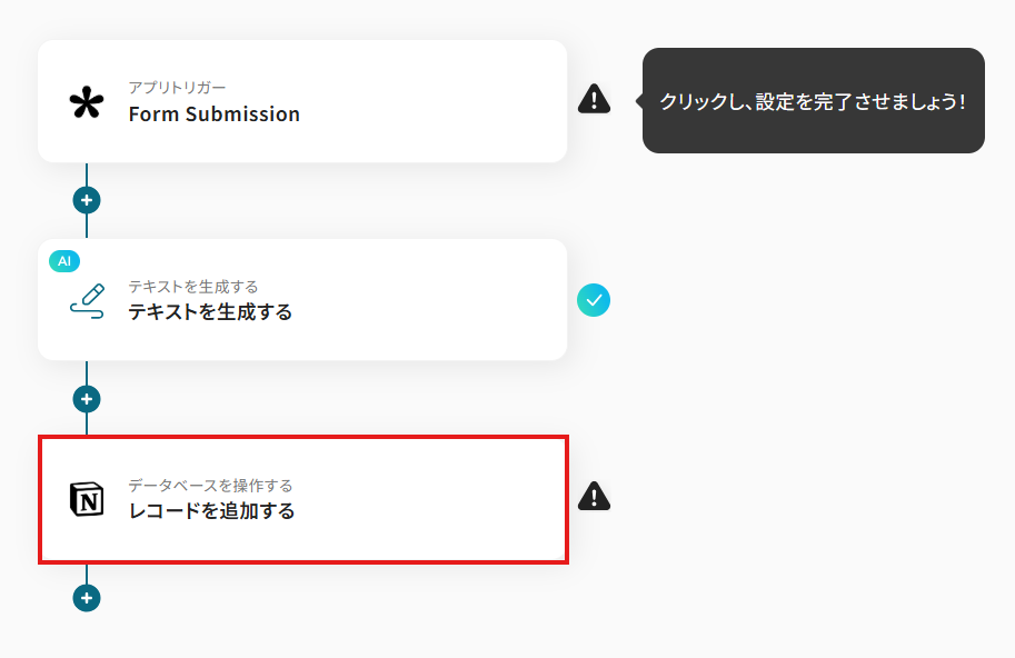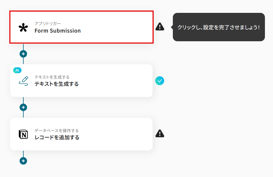 このワークフローを活用すれば、Tallyのフォーム回答をトリガーとして、AIが自動で内容を分析・要約し、その結果をNotionのデータベースへ自動で追加するため、こうした課題をスムーズに解消できます。