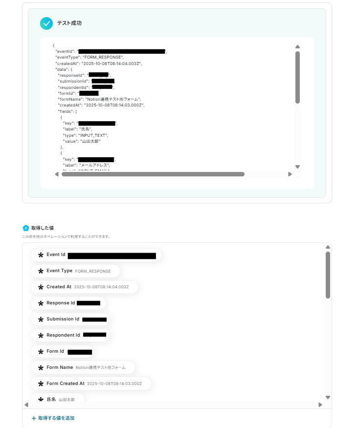 ※後続のNotionのトリガー設定時のテストで必要になります。