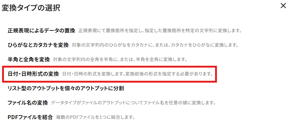 「日付・日時形式の変換」を選択しましょう。