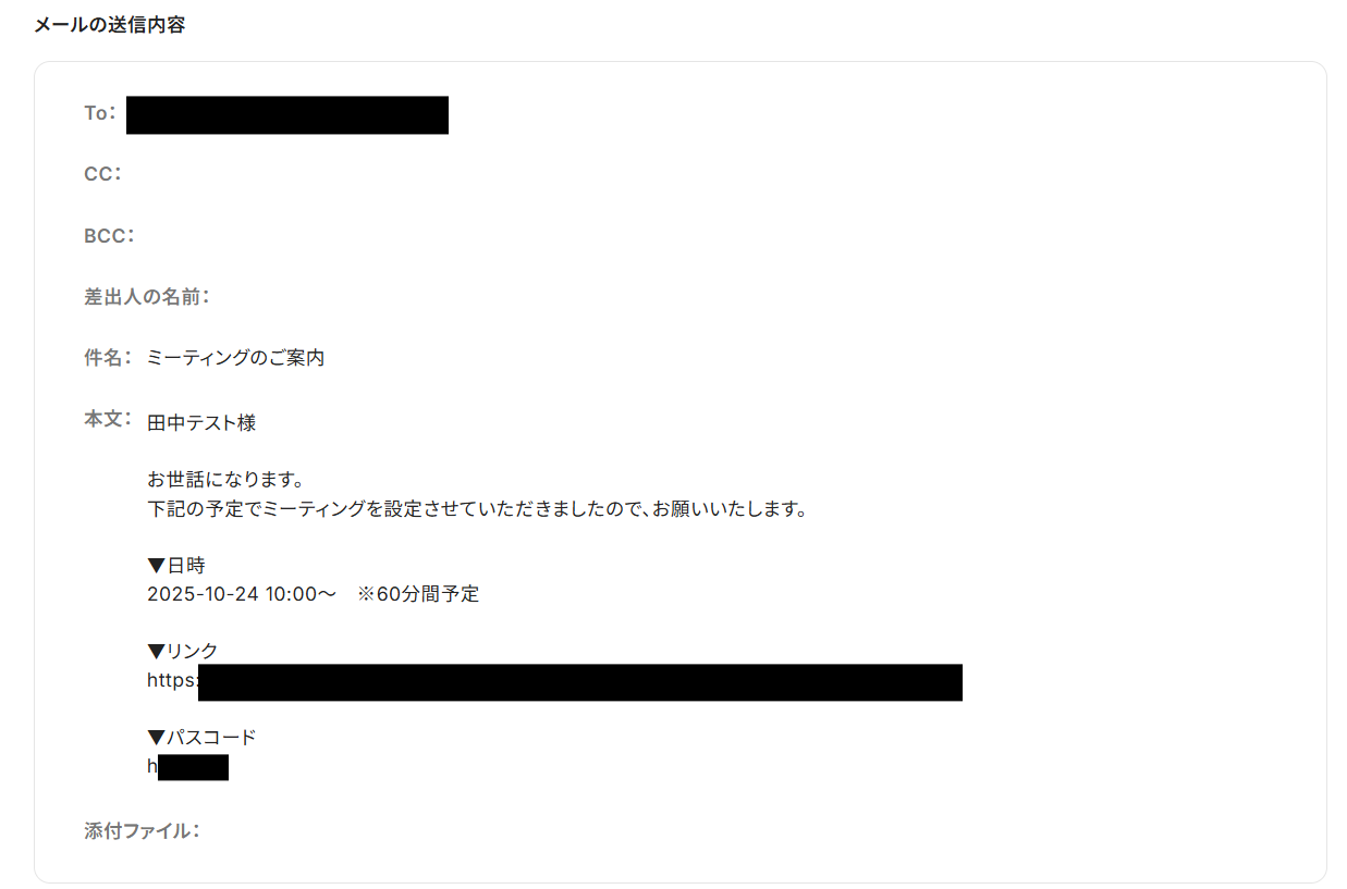 ・ミーティング設定後の案内メール送信を自動化し、連絡漏れなどのミスを防ぎたい方