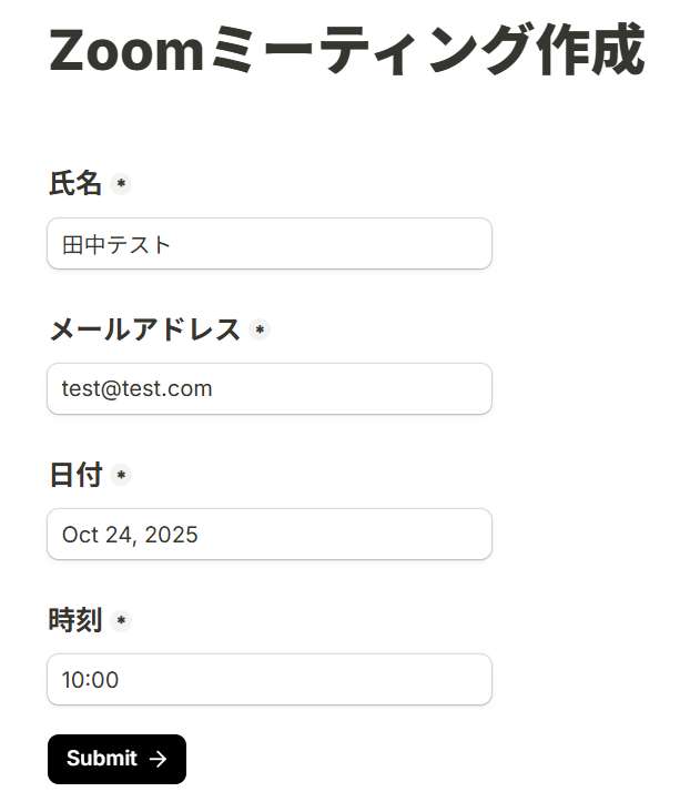 Webhookを設定できたら、Tallyのフォームにテスト用の回答を行いましょう。