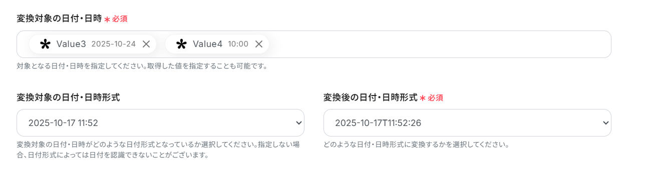 開始日時と終了日時の変換には、それぞれオペレーションが必要です。