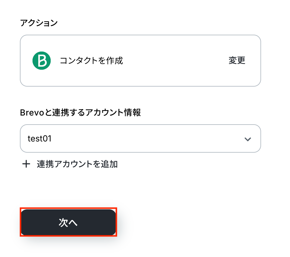 Brevoと連携するアカウント情報に問題がなければ、「次へ」をクリックします。