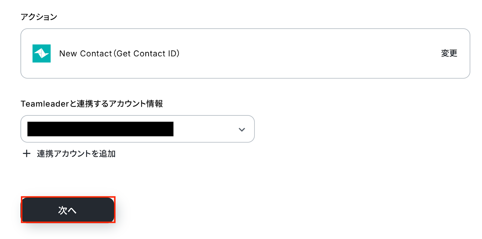 Teamleaderと連携するアカウント情報に問題がなければ、「次へ」をクリックします。