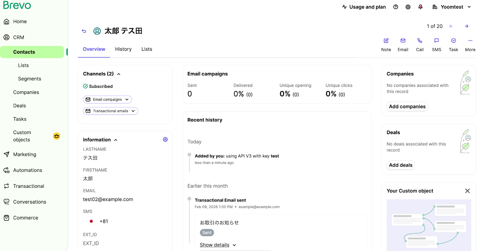 実際にTeamleaderでContactを作成し、Brevoに同じ情報がコンタクトとして正しく作成されるかを確認してみましょう。