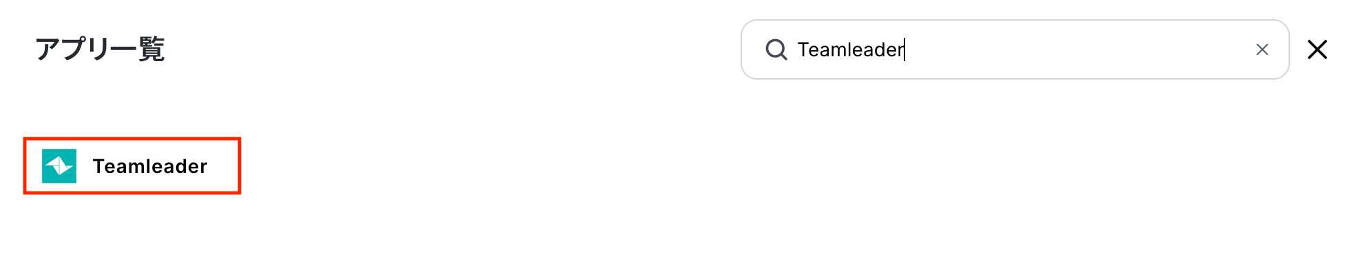 新規接続をクリックしたあと、アプリのメニュー一覧が表示されるのでTeamleaderと検索し対象アプリをクリックしてください。