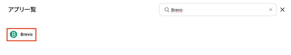 新規接続をクリックしたあと、アプリのメニュー一覧が表示されるのでBrevoと検索し対象アプリをクリックしてください。