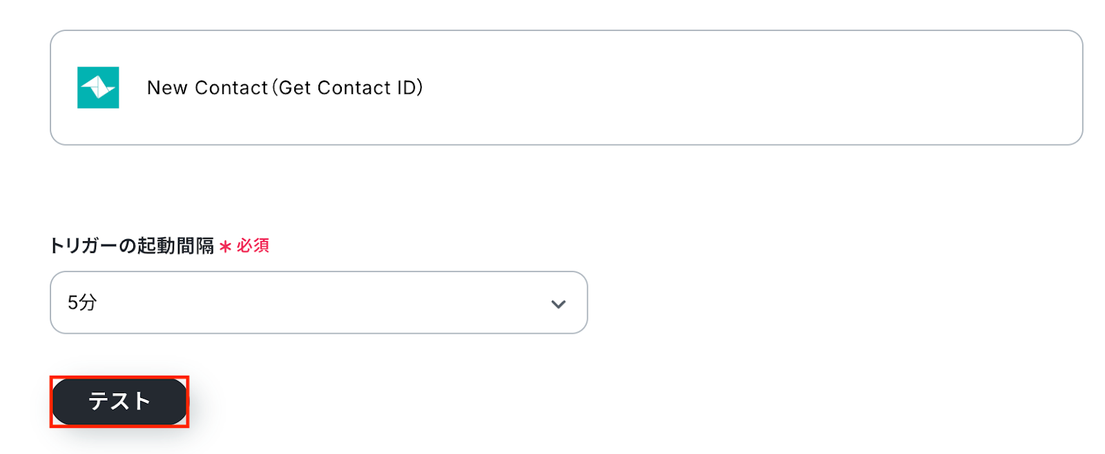 入力が完了したら、設定内容とトリガーの動作を確認するため「テスト」をクリックします。