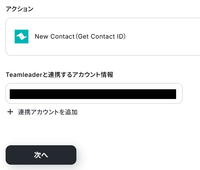 Teamleaderと連携するアカウント情報を確認し、次のページに進んでください。