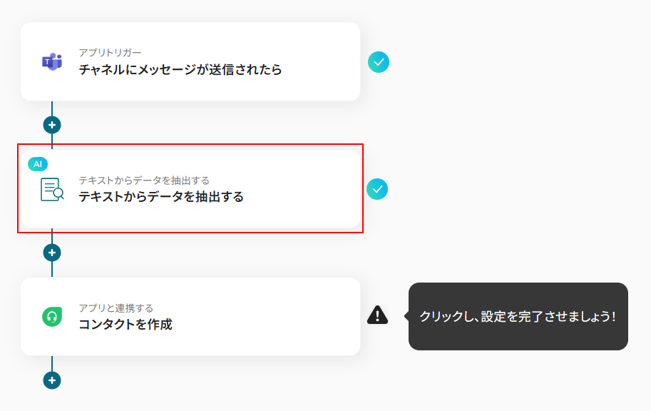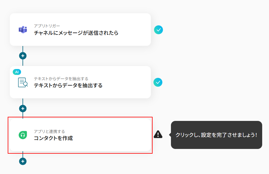 ここでは抽出したテキストを使って、Freshdeskのコンタクトを作成します。 「コンタクトを作成する」をクリックしましょう。
