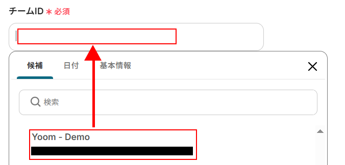 チームIDを設定します。 入力欄をクリックすると候補が表示されますので、使用したいものを選択しましょう。