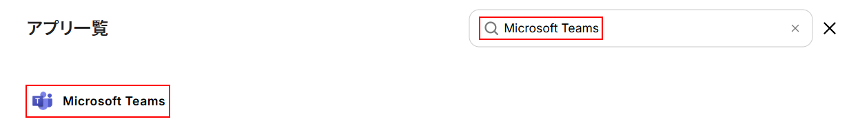 「+新規接続」ボタンをクリックし、入力欄に「Microsoft Teams」と入力したら表示されたアプリをクリックします。