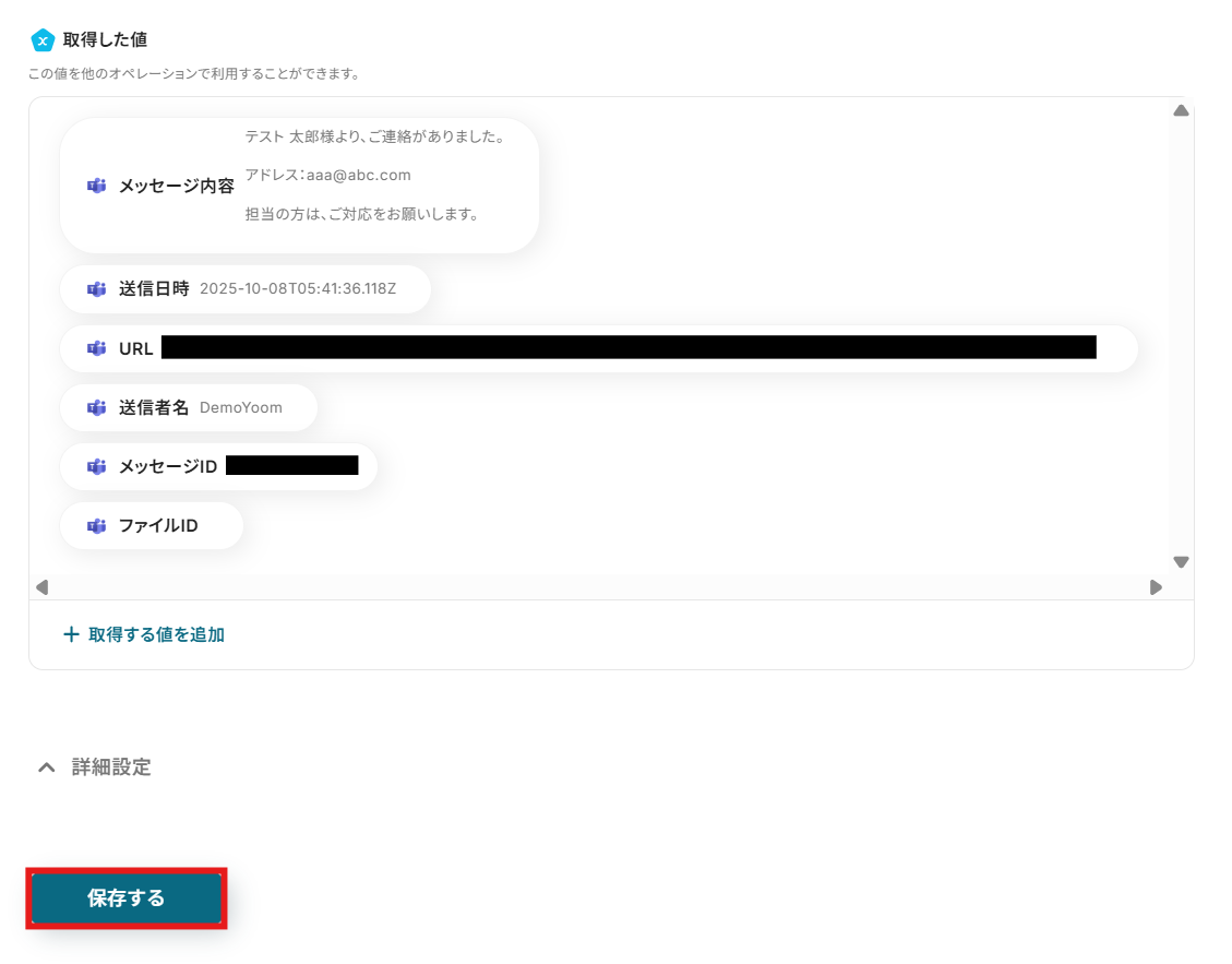 Microsoft Teamsで受信した特定条件の内容をもとに、Freshsalesに連絡先を作成する