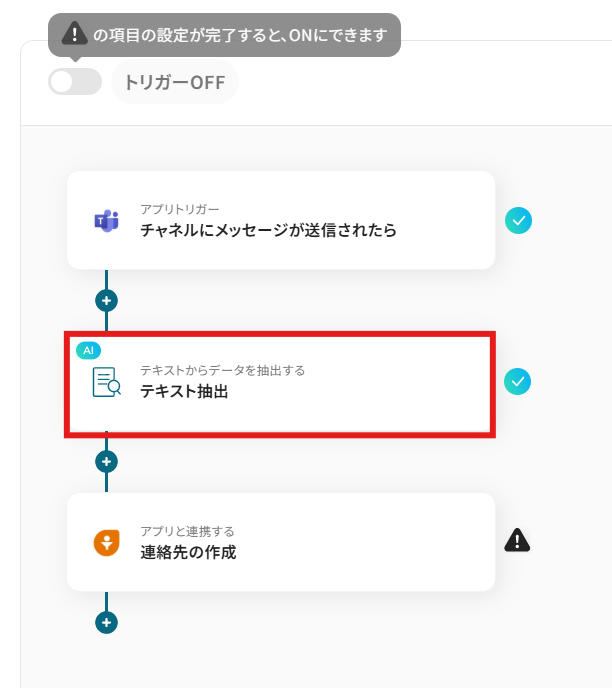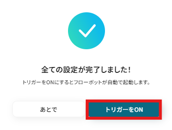 以下の画面が表示されるので、「トリガーをON」をクリックしたら、自動化の設定は完了となります。