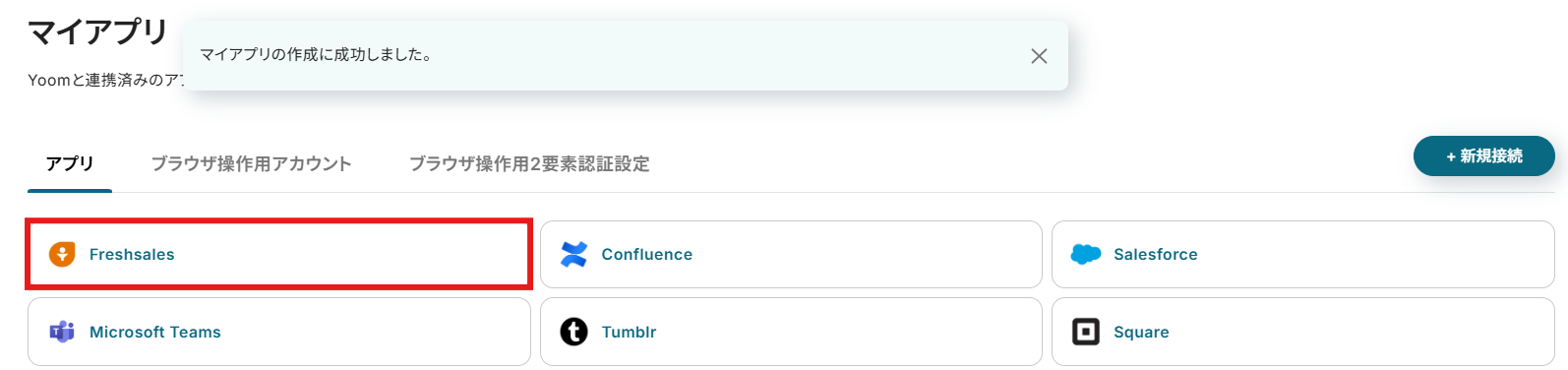 マイアプリにFreshsalesが追加されたことを確認出来たら、