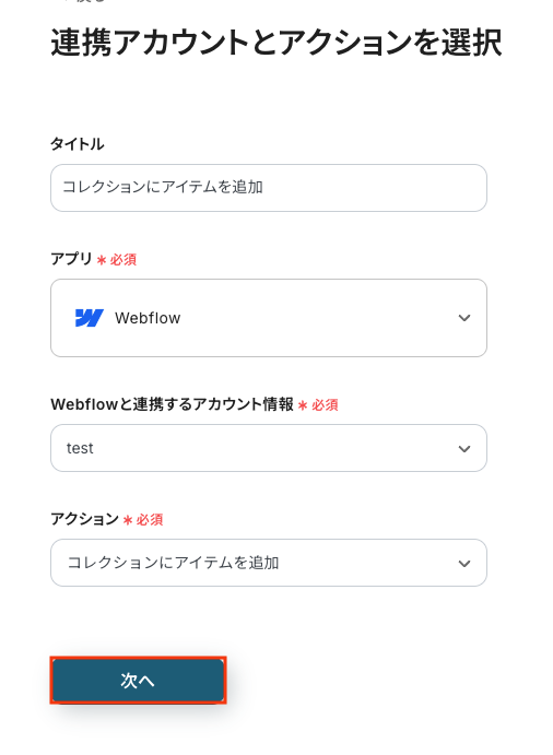 ステップ5: Webflowにアイテムを追加する設定