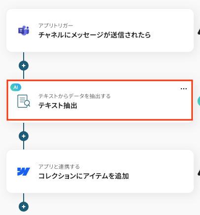 トリガーで取得したメッセージ内容をもとに、AIで特定のテキストを抽出します。