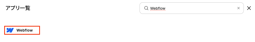 新規接続をクリックしたあと、アプリのメニュー一覧が表示されるのでWebflowと検索し対象アプリをクリックしてください。