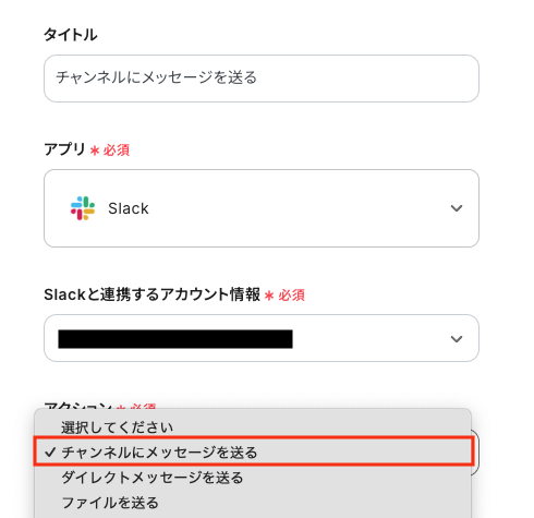 最後のオペレーションにある、「チャンネルにメッセージを送る」をクリックしてください。