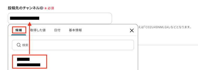 「投稿先のチャンネルID」を、候補から選択します。