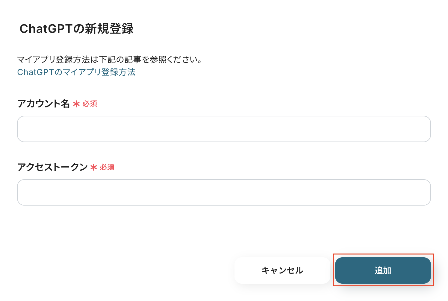 入力後、「追加」をクリックすると、マイアプリ登録が完了します。