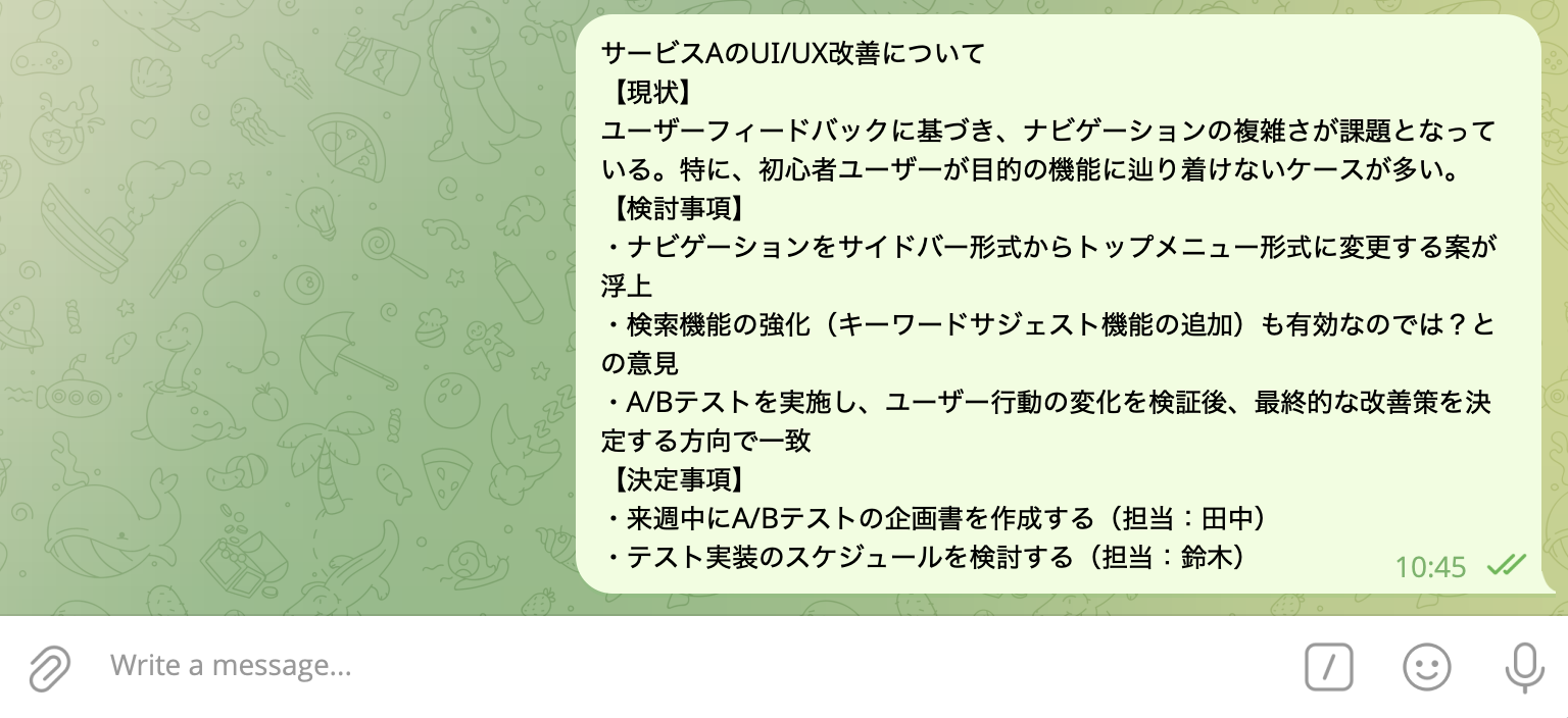 ・Telegramを日常的に使用しているが、重要なメッセージを見逃しがちなビジネスパーソン