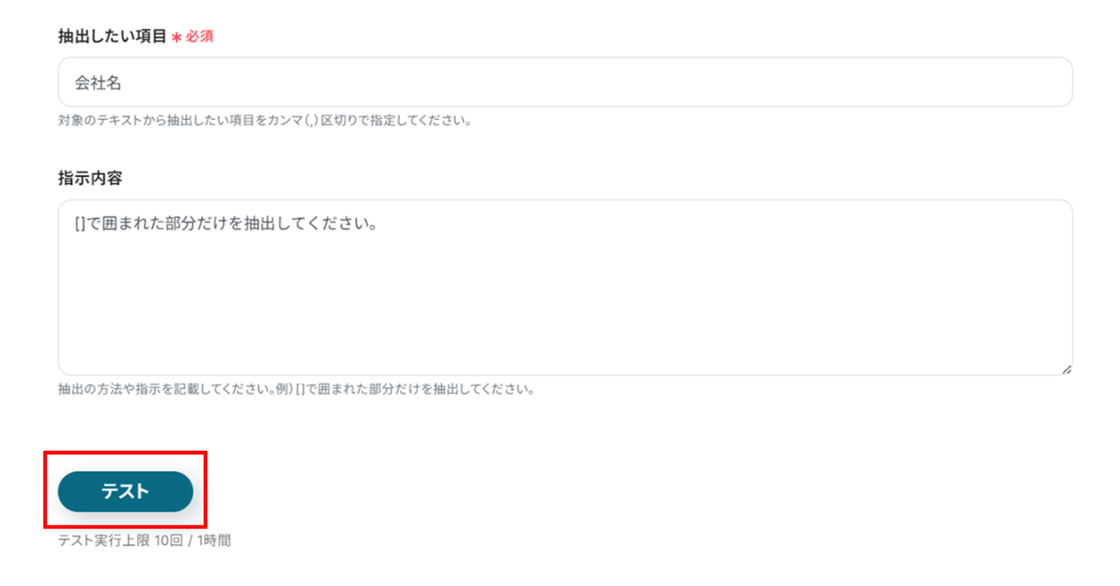 テストに成功すると、取得した値にAIが抽出したテキストが反映されます。