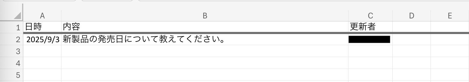テストを実行し、Microsoft Excelにメッセージ内容が追加されていれば、設定完了です。 確認後、管理画面の「保存する」をクリックしてください。