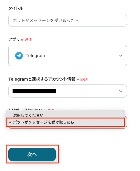 それでは、今回のフローで使用する各アプリとYoomの連携を進めていきましょう。 まずはTelegramを登録 します。以下のナビをご参照ください。