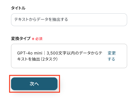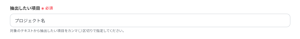 「抽出したい項目」は、手動で入力します。 「指示内容」は、必要に応じて入力してください。