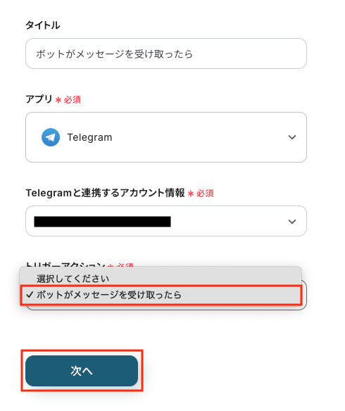 ステップ3:Telegramのトリガー設定