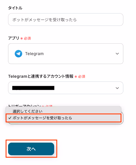 Telegramを選択後、「アカウント名」「アクセストークン」を入力してください。