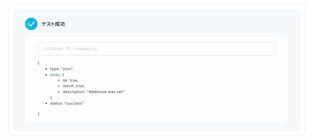 ここでは、Webhook(ウェブフック)の設定が正常に機能するかどうかのテストを行います。