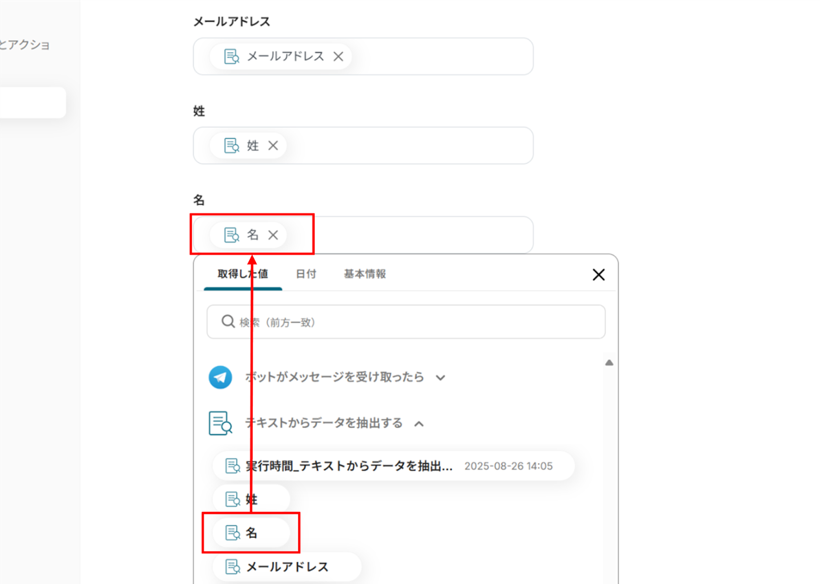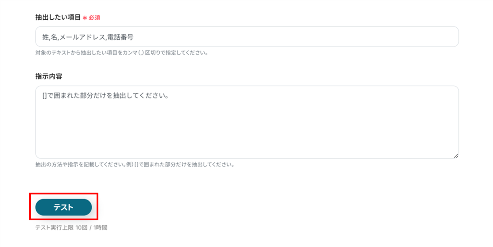 テストに成功すると、取得した値にAIが抽出したテキストが反映されます。