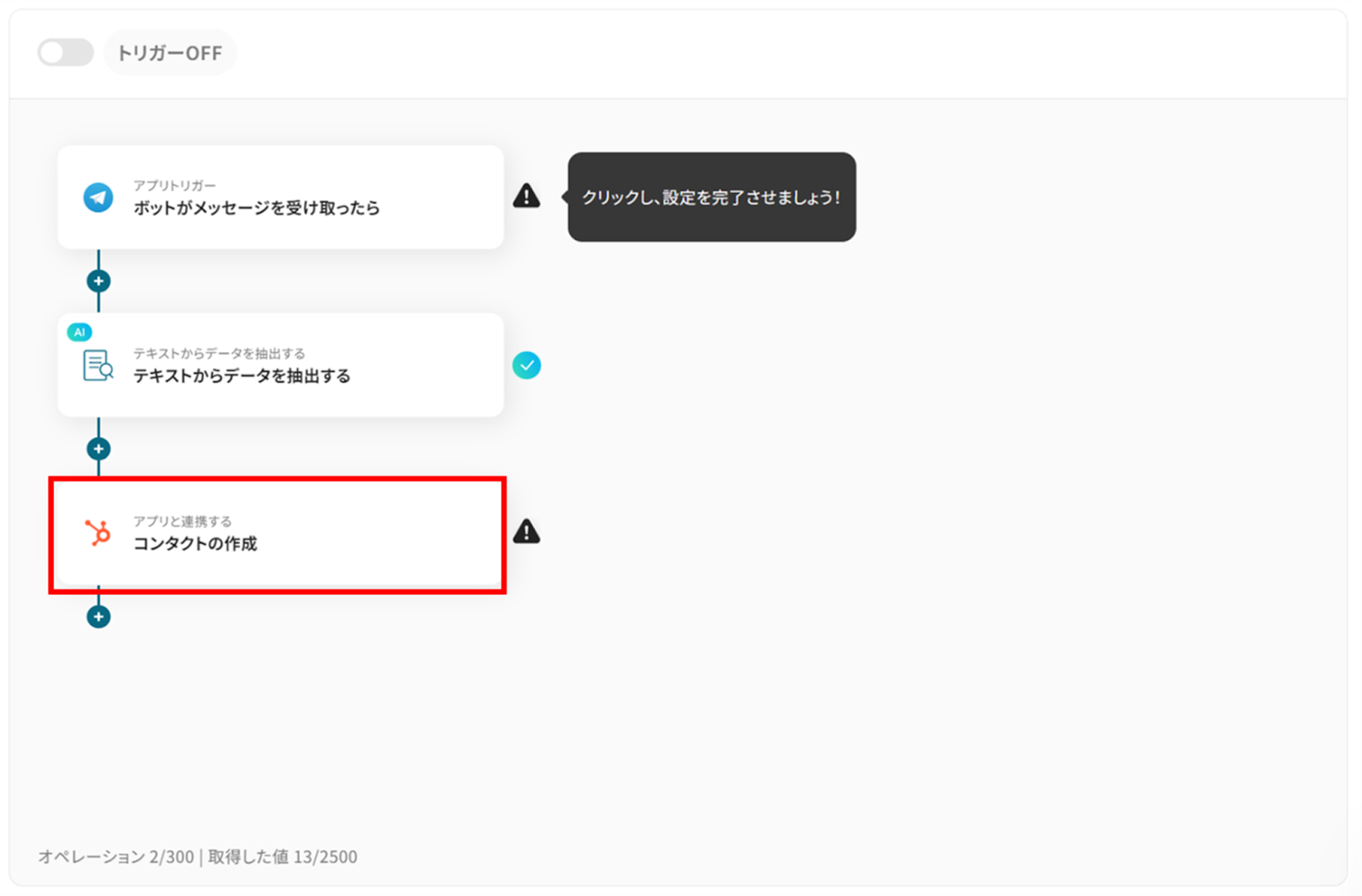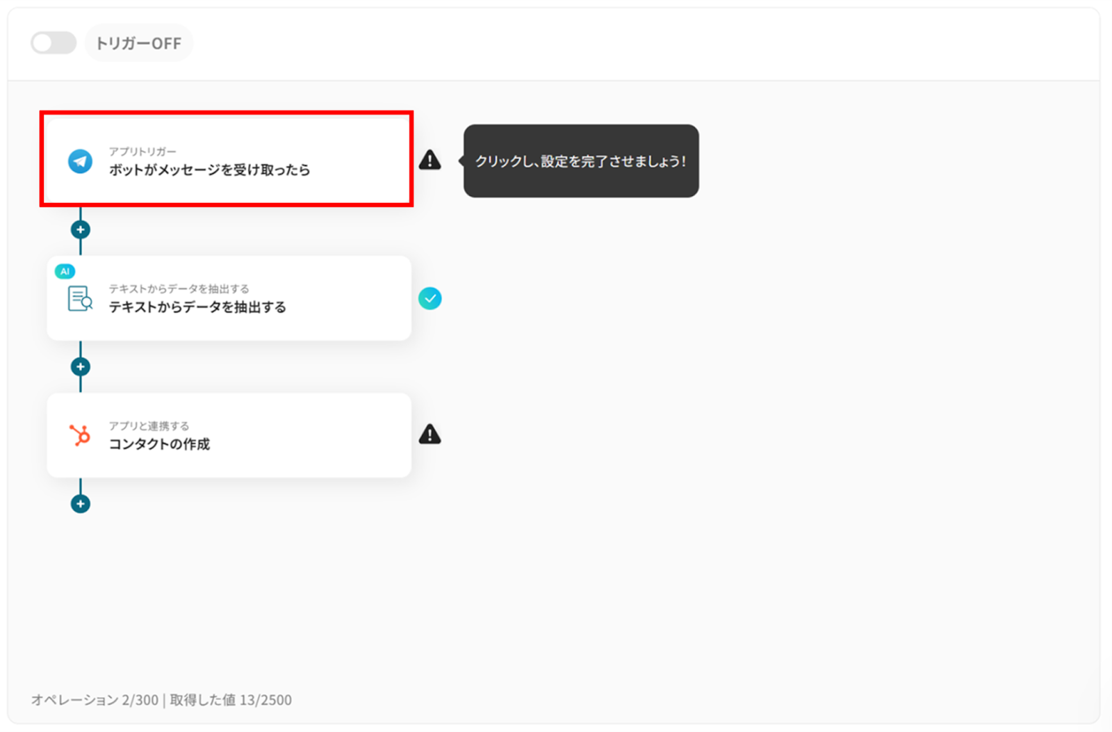 それでは、実際にTelegramとHubSpotを連携させる自動化フローを作成する手順をご紹介します。