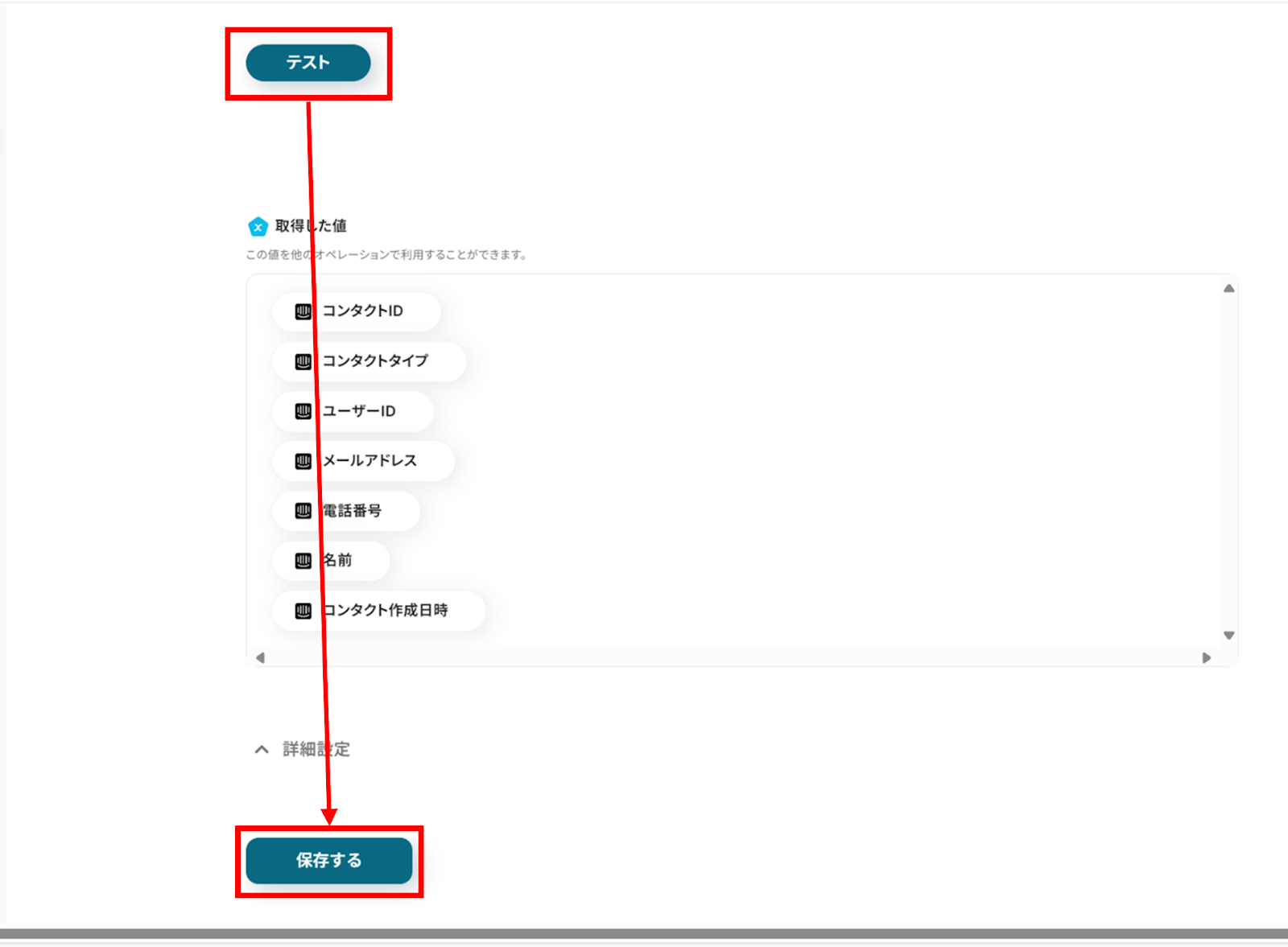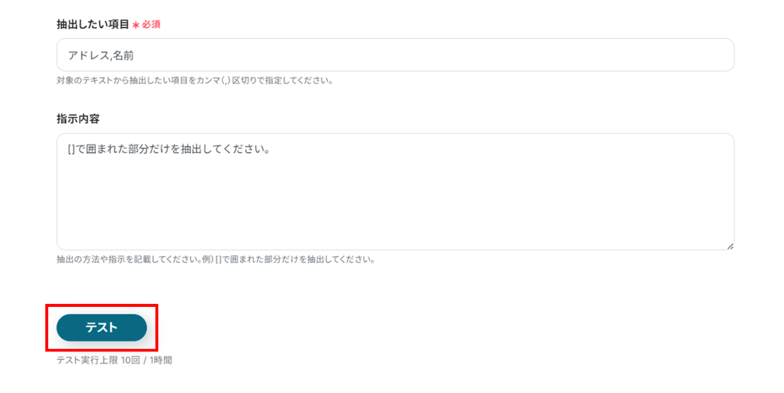 テストに成功すると、取得した値にAIが抽出したテキストが反映されます。