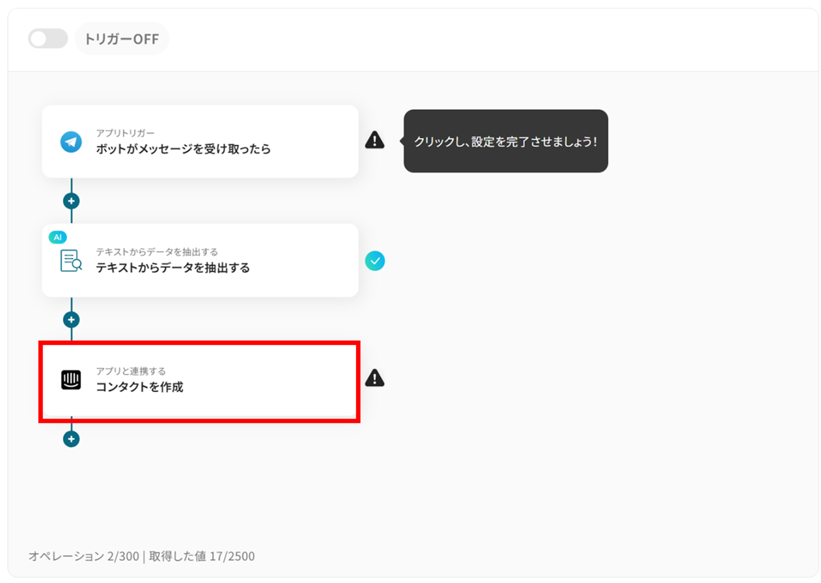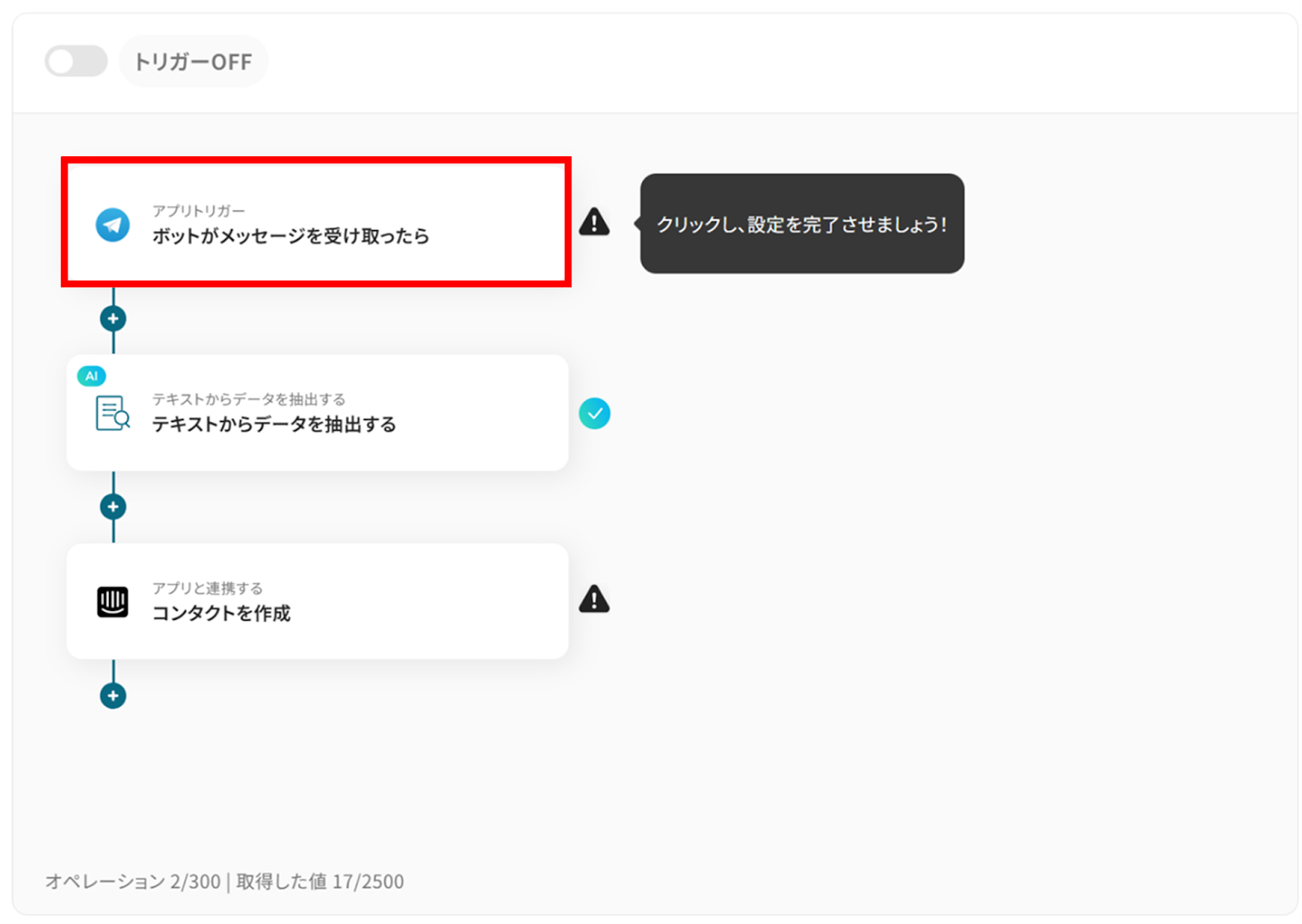 例えば、Telegramの特定のグループに投稿された内容をトリガーとして、Intercomに新しいコンタクトを自動で作成するといったことが可能になります。