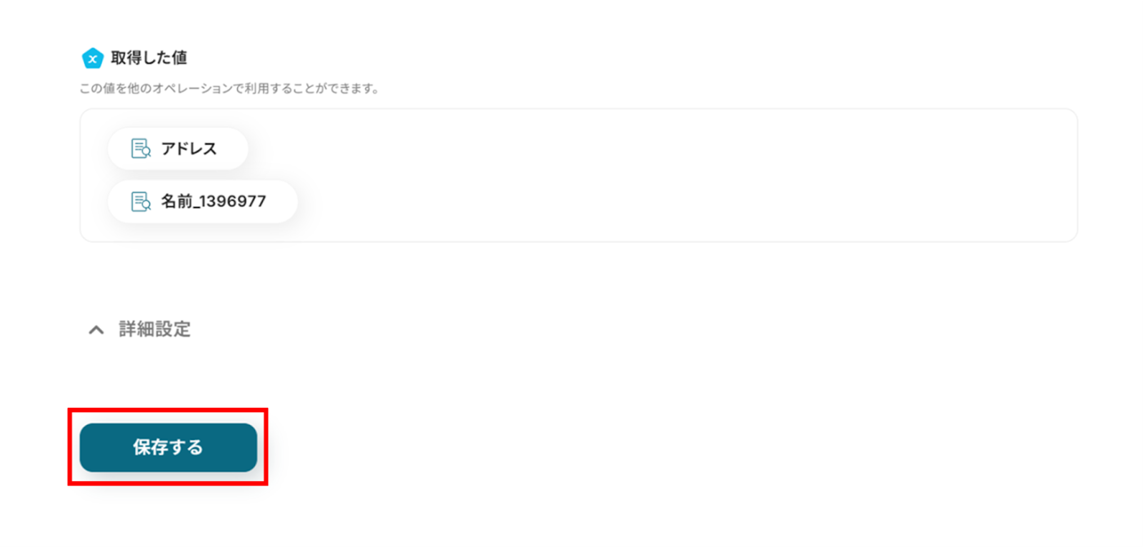 - 対象のテキスト:先ほど取得した値を使って入力します。