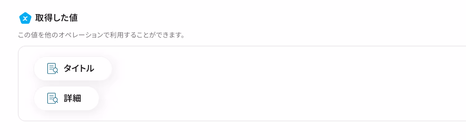 contentはテキストを抽出で取得した値から「タイトル」を選択します。