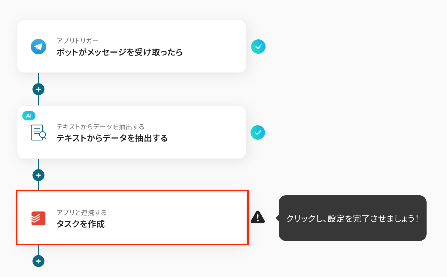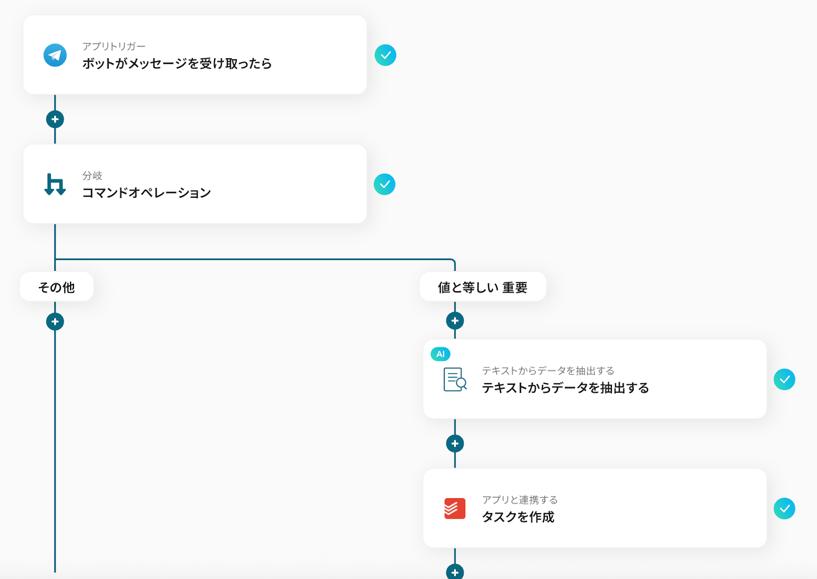 ここでは、Telegramのメッセージから抽出した内容を使って自動的にタスクを作成する作業をノーコードでできるようにします。