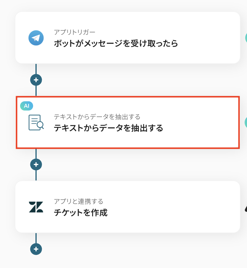 Telegramからトリガーイベントとして受信したメッセージ内容を対象に、AIで特定のテキストを抽出します。