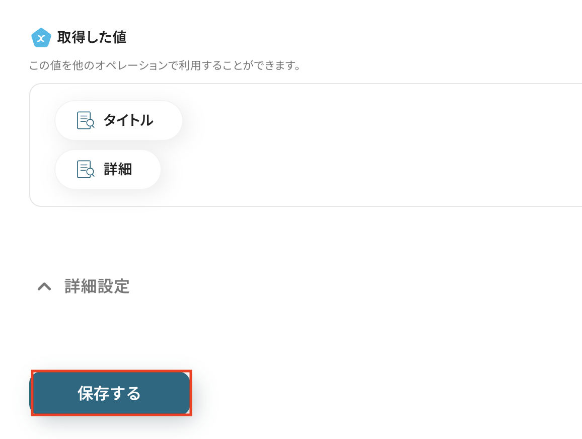 以下の画像の取得した値(=アウトプット)は後続のステップで利用可能です。