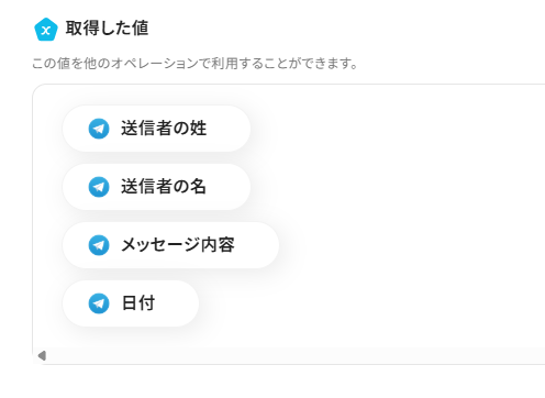 取得した値は、後続のオペレーション設定時の値としてご利用いただくことができ、フローボットを起動する度に、変動した値となります。