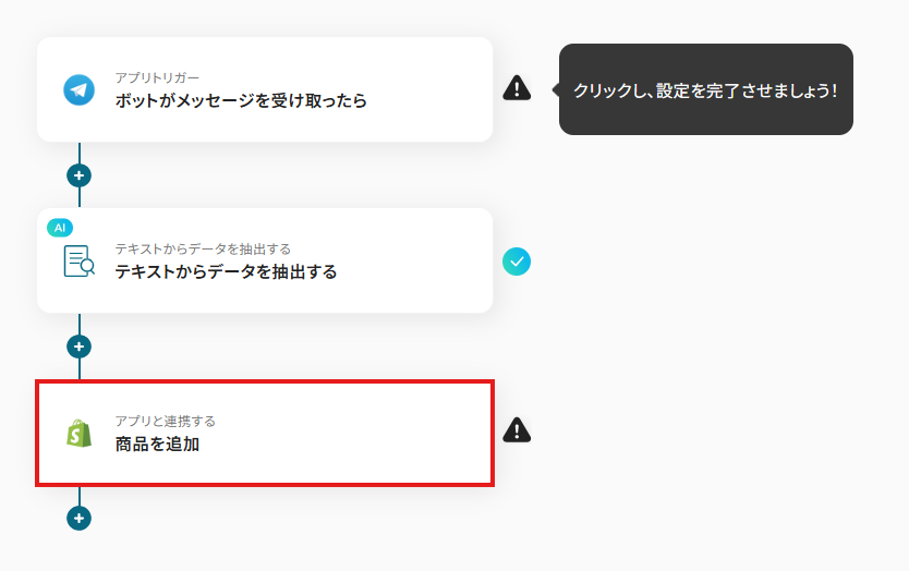 今回は「Telegramで投稿があったら、Shopifyで商品を追加する」フローを作成していきます!