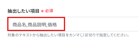 複数の項目を設定する場合、カンマ(,)区切りで入力してくださいね!今回はテンプレートを活用して、以下画像のように入力しています。